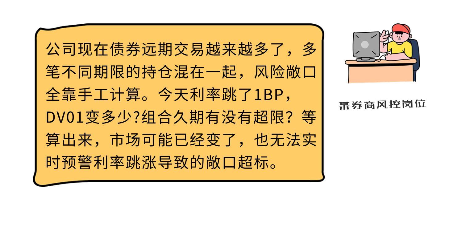 風控一體化。嵌入DV01、交易對手信用風險敞口等多維度指標,聯動限額監控系統,主動規避市場沖擊。